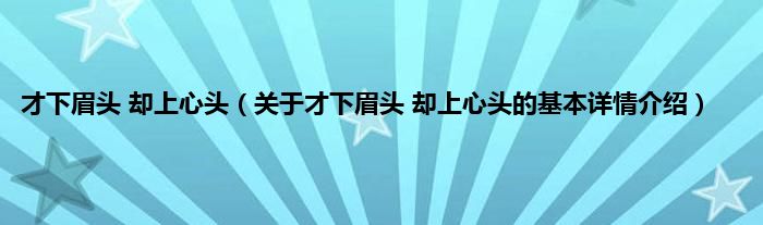本文关于才下眉头 却上心头的基本详情介绍就讲解完毕,希望对大家有所帮助。