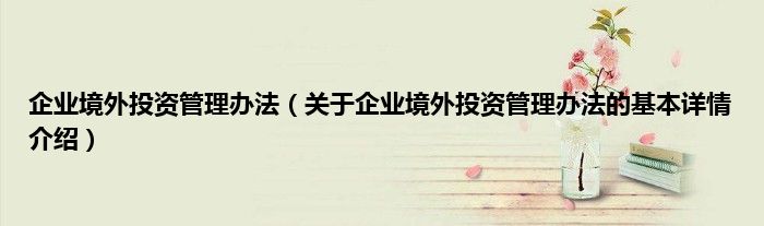 本文关于企业境外投资管理办法的基本详情介绍就讲解完毕,希望对大家有所帮助。