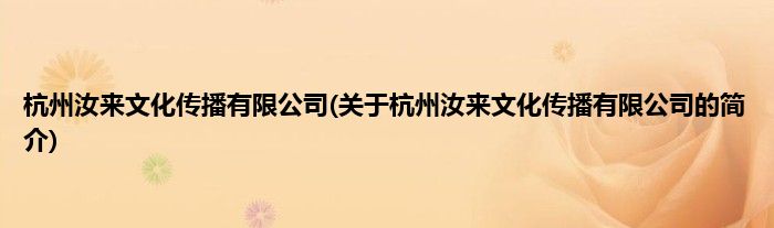 本文关于杭州汝来文化传播有限公司的简介就讲解完毕,希望对大家有所帮助。