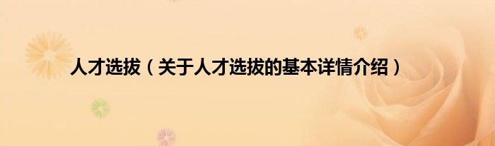 本文关于人才选拔的基本详情介绍就讲解完毕,希望对大家有所帮助。