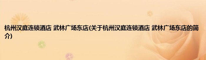 大家好,杭州汉庭连锁酒店 武林广场东店,关于杭州汉庭连锁酒店 武林广场东店的简介很多人还不知道,现在让我们一起来看看吧!