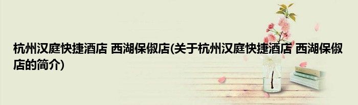 本文关于杭州汉庭快捷酒店 西湖保俶店的简介就讲解完毕,希望对大家有所帮助。