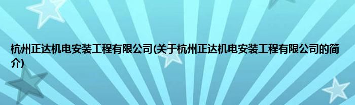 本文关于杭州正达机电安装工程有限公司的简介就讲解完毕,希望对大家有所帮助。