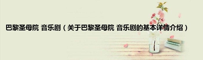 本文关于巴黎圣母院 音乐剧的基本详情介绍就讲解完毕,希望对大家有所帮助。