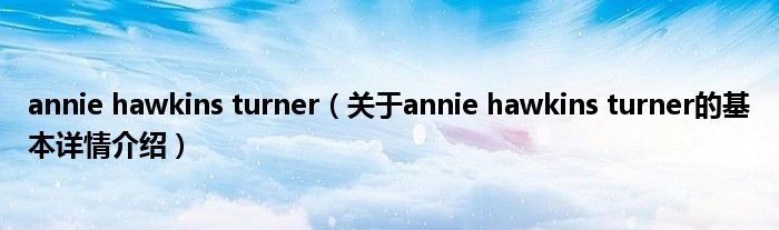 本文关于annie hawkins turner的基本详情介绍就讲解完毕,希望对大家有所帮助。