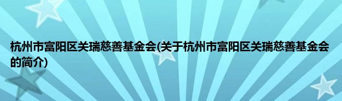 本文关于杭州市富阳区关瑞慈善基金会的简介就讲解完毕,希望对大家有所帮助。