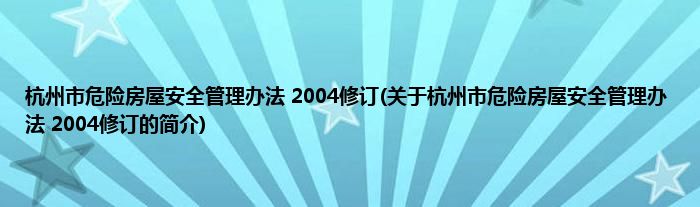本文关于杭州市危险房屋安全管理办法 2004修订的简介就讲解完毕,希望对大家有所帮助。