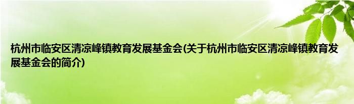 本文关于杭州市临安区清凉峰镇教育发展基金会的简介就讲解完毕,希望对大家有所帮助。