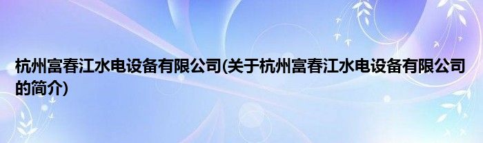 本文关于杭州富春江水电设备有限公司的简介就讲解完毕,希望对大家有所帮助。