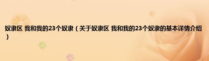 本文关于奴隶区 我和我的23个奴隶的基本详情介绍就讲解完毕,希望对大家有所帮助。