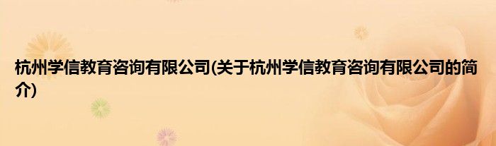 本文关于杭州学信教育咨询有限公司的简介就讲解完毕,希望对大家有所帮助。
