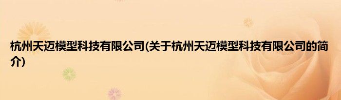 本文关于杭州天迈模型科技有限公司的简介就讲解完毕,希望对大家有所帮助。