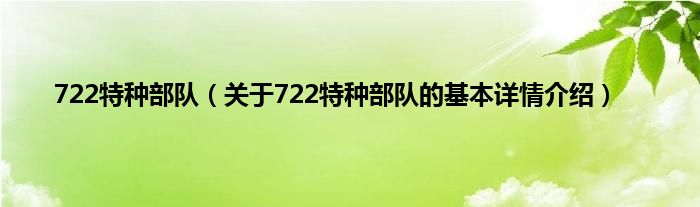 本文关于722特种部队的基本详情介绍就讲解完毕,希望对大家有所帮助。