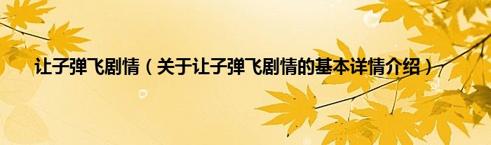 让子弹飞剧情(关于让子弹飞剧情的基本详情介绍)