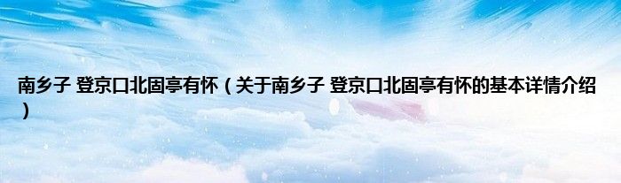 本文关于南乡子 登京口北固亭有怀的基本详情介绍就讲解完毕,希望对大家有所帮助。