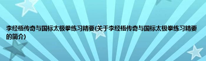 本文关于李经梧传奇与国标太极拳练习精要的简介就讲解完毕,希望对大家有所帮助。