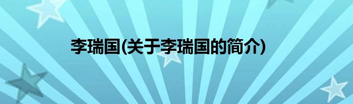 大家好,李瑞国,关于李瑞国的简介很多人还不知道,现在让我们一起来看看吧!