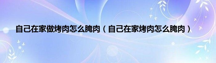 大家好,小科来为大家解答以上问题。自己在家做烤肉怎么腌肉,自己在家烤肉怎么腌肉很多人还不知道,现在让我们一起来看看吧!
