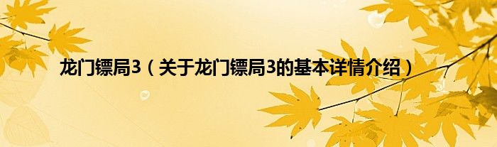 龙门镖局3(关于龙门镖局3的基本详情介绍)