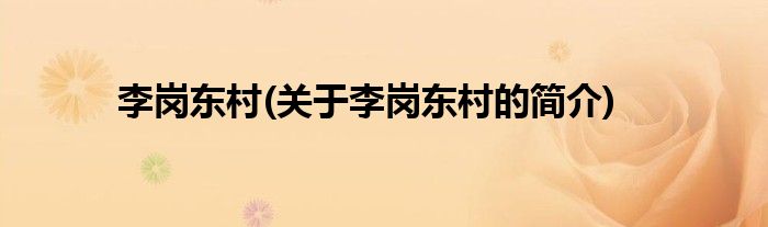 大家好,李岗东村,关于李岗东村的简介很多人还不知道,现在让我们一起来看看吧!