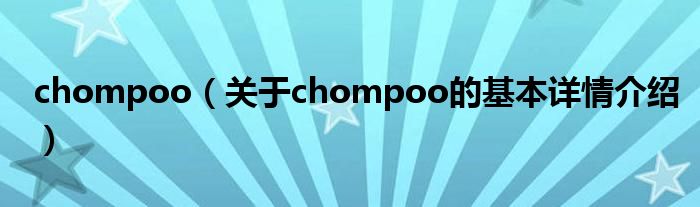 大家好我是小蝌蚪,chompoo,关于chompoo的基本详情介绍很多人还不知道,那么现在让我们一起来看看吧!