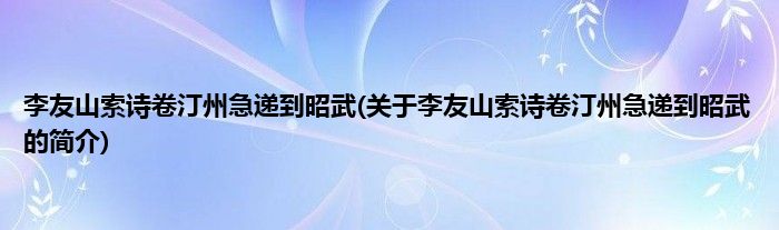 本文关于李友山索诗卷汀州急递到昭武的简介就讲解完毕,希望对大家有所帮助。