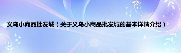 本文关于义乌小商品批发城的基本详情介绍就讲解完毕,希望对大家有所帮助。