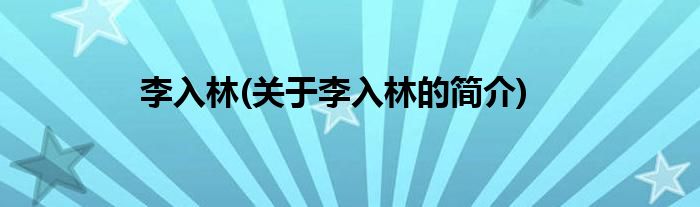 大家好,李入林,关于李入林的简介很多人还不知道,现在让我们一起来看看吧!