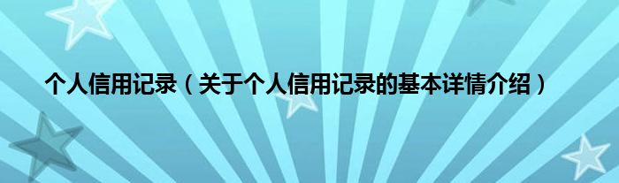 本文关于个人信用记录的基本详情介绍就讲解完毕,希望对大家有所帮助。