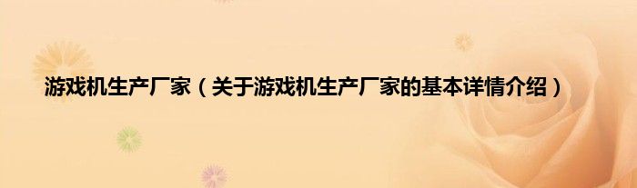 本文关于游戏机生产厂家的基本详情介绍就讲解完毕,希望对大家有所帮助。