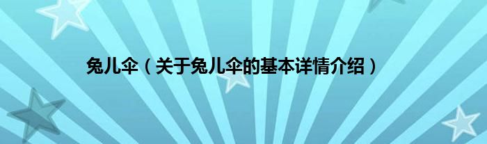 大家好我是小蝌蚪,兔儿伞,关于兔儿伞的基本详情介绍很多人还不知道,那么现在让我们一起来看看吧!