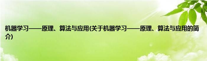 本文关于机器学习——原理、算法与应用的简介就讲解完毕,希望对大家有所帮助。