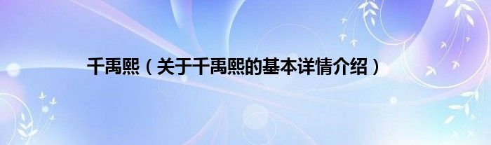 本文关于千禹熙的基本详情介绍就讲解完毕,希望对大家有所帮助。