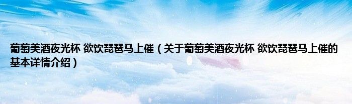 本文关于葡萄美酒夜光杯 欲饮琵琶马上催的基本详情介绍就讲解完毕,希望对大家有所帮助。