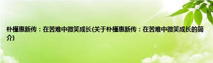 大家好,朴槿惠新传:在苦难中微笑成长,关于朴槿惠新传:在苦难中微笑成长的简介很多人还不知道,现在让我们一起来看看吧!
