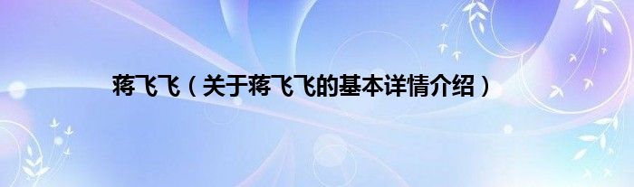 本文关于蒋飞飞的基本详情介绍就讲解完毕,希望对大家有所帮助。