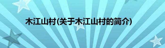 大家好,木江山村,关于木江山村的简介很多人还不知道,现在让我们一起来看看吧!