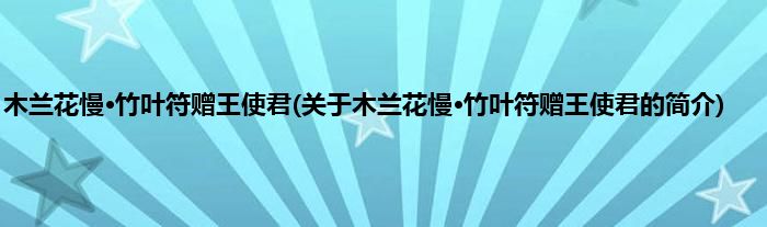 本文关于木兰花慢·竹叶符赠王使君的简介就讲解完毕,希望对大家有所帮助。