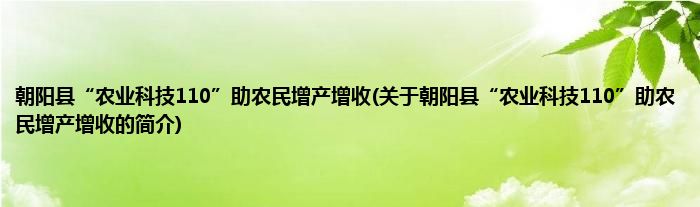 朝阳县“农业科技110”助农民增产增收(关于朝阳县“农业科技110”助农民增产增收的简介)