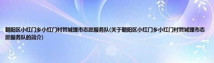 朝阳区小红门乡小红门村管城理市志愿服务队(关于朝阳区小红门乡小红门村管城理市志愿服务队的简介)