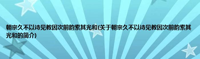 本文关于朝宗久不以诗见教因次前韵索其光和的简介就讲解完毕,希望对大家有所帮助。
