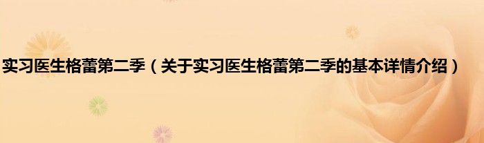 本文关于实习医生格蕾第二季的基本详情介绍就讲解完毕,希望对大家有所帮助。