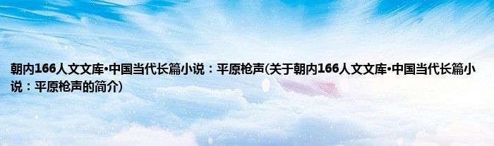 本文关于朝内166人文文库·中国当代长篇小说:平原枪声的简介就讲解完毕,希望对大家有所帮助。