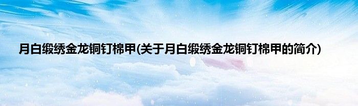 本文关于月白缎绣金龙铜钉棉甲的简介就讲解完毕,希望对大家有所帮助。