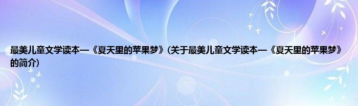 本文关于最美儿童文学读本—《夏天里的苹果梦》的简介就讲解完毕,希望对大家有所帮助。