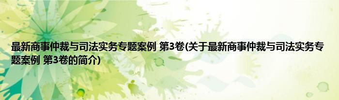 本文关于最新商事仲裁与司法实务专题案例 第3卷的简介就讲解完毕,希望对大家有所帮助。
