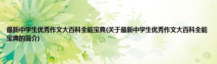 本文关于最新中学生优秀作文大百科全能宝典的简介就讲解完毕,希望对大家有所帮助。