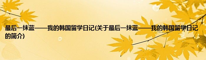 大家好,最后一抹蓝——我的韩国留学日记,关于最后一抹蓝——我的韩国留学日记的简介很多人还不知道,现在让我们一起来看看吧!