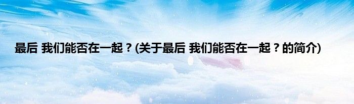 大家好,最后,我们能否在一起?,关于最后,我们能否在一起?的简介很多人还不知道,现在让我们一起来看看吧!