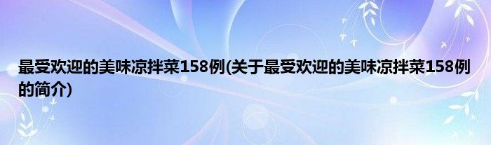 本文关于最受欢迎的美味凉拌菜158例的简介就讲解完毕,希望对大家有所帮助。